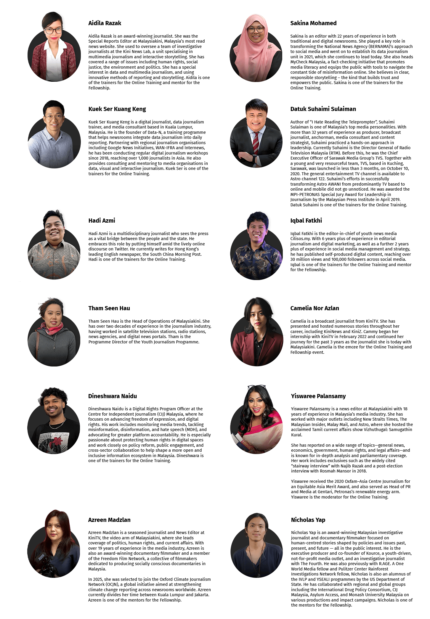 - Ten participants will be selected to join the fellowship in July. They will receive hands-on training in videography and photography, networking opportunities with industry experts, and tours of Malaysiakini, Astro Awani, BERNAMA and other newsrooms. They will also produce a video under the guidance of a mentor to compete for prizes worth over RM 17,000.